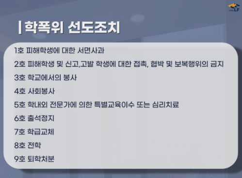 ☑️1호(서면사과), 2호(보복행위 금지), 3호(교내봉사) 처분은