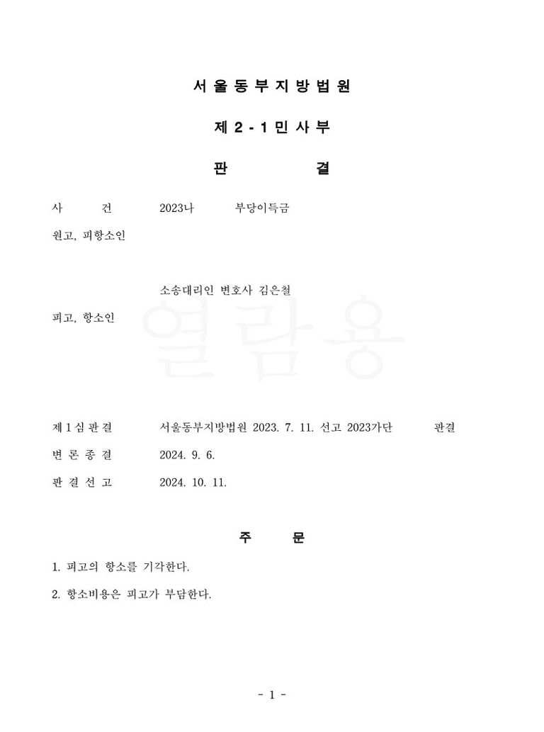 제1심에서 법원은 원고의 청구를 인용하는 판결을 선고 하였고, 이에 피고가 항소를 하였는데, 항소심에서도 법원은 원고 소송대리인의 주장을 인정하여 피고의 항소를 기각하는 판결을 선고 하였습니다.