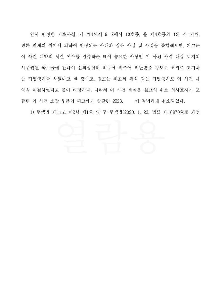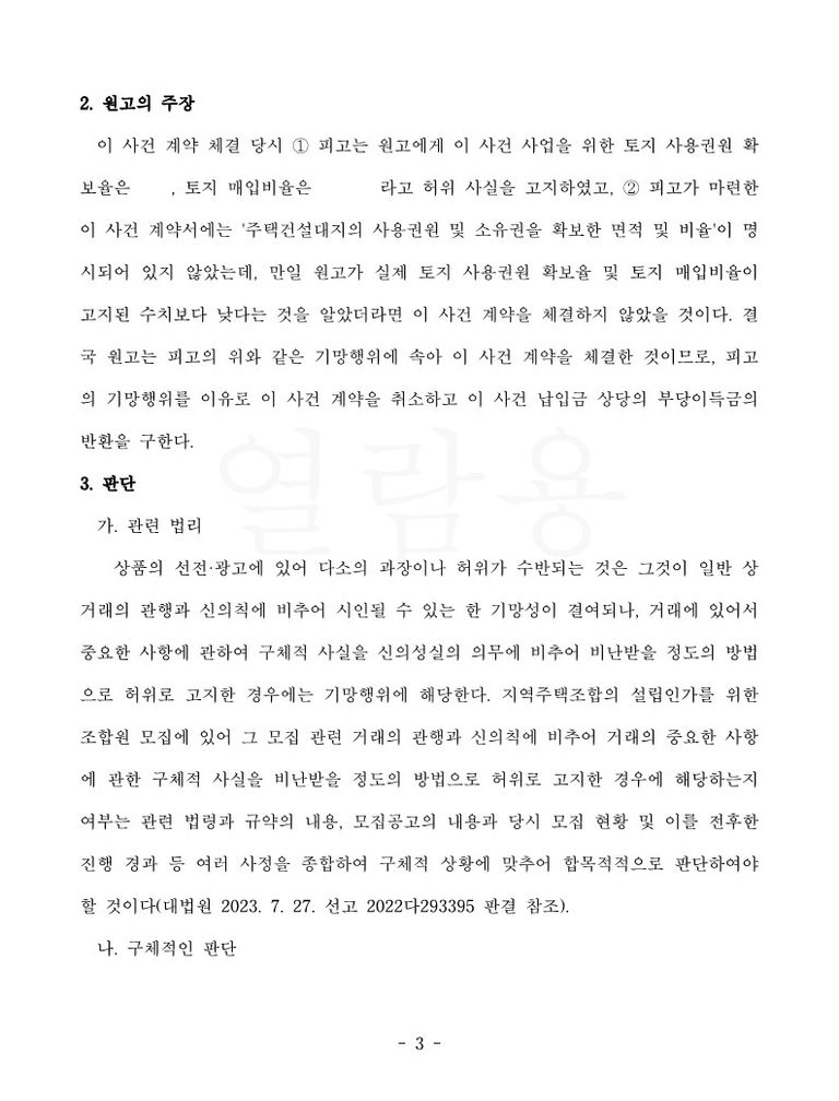 [참고] - 기망행위를 이유로 한 지역주택조합 가입계약취소와 토지사용권한 확보 증명서류
