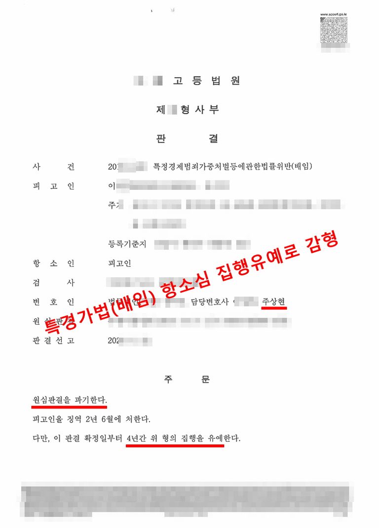 의뢰인은 특경가법위반(배임) 사건의 제1심에서 2년 6월의 실형을 선고받았으나, 항소심에서 변호인으로부터 다양한 법적 조력(무죄 주장, 피해자와의 합의, 탄원서 작성 등)을 받아 집행유예로 감형 받은 사례입니다.