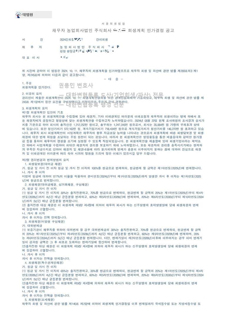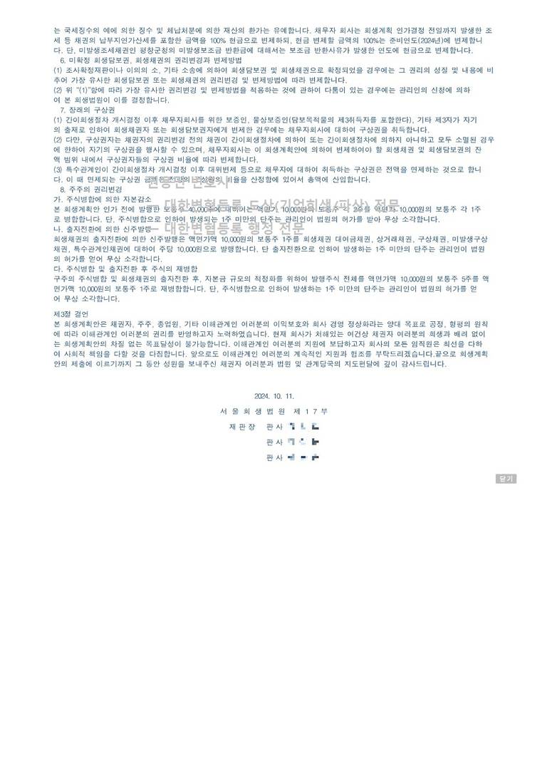 2024. 10. 118. 법인회생 인가 - 서울회생법원
