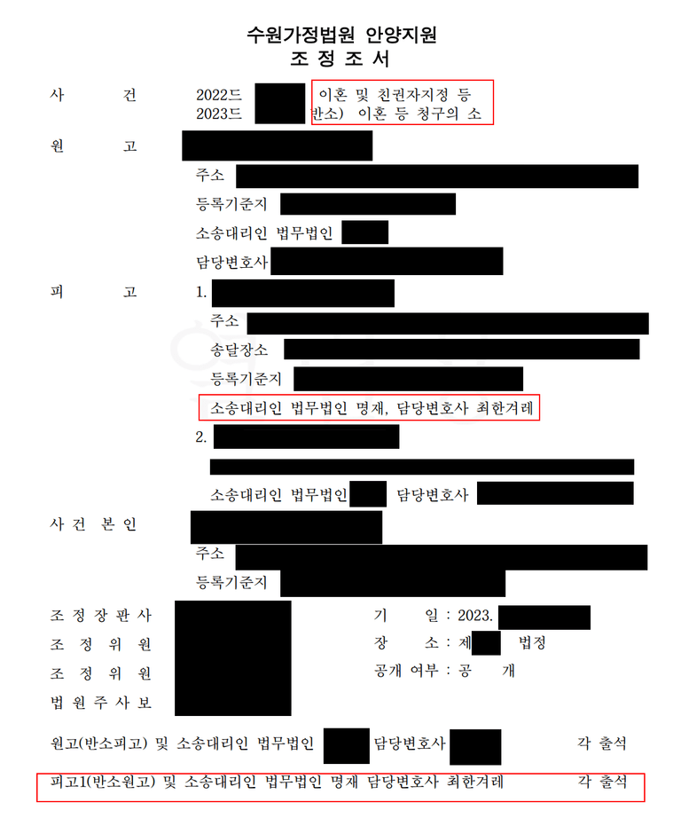 의뢰인(피고1, 아내)은 부정행위를 이유로 내연남과 함께 남편에게 소송을 당합니다.