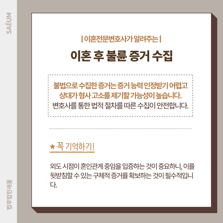 이혼 후 불륜 증거 수집, 합법적으로 해야