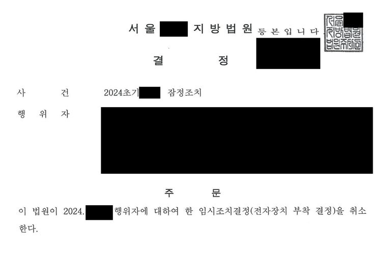무려 4일 만에 잠정처분이 취소되는 결정이 나왔답니다!!