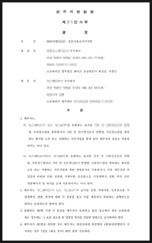 ![[상호분쟁] "전부승소"ㅣ상호사용금지가처분, 간접강제 인용](/_next/image?url=https%3A%2F%2Fd2ai3ajp99ywjy.cloudfront.net%2Fuploads%2Ftitleimage%2Foriginal%2F5baca35135be538753b93692-original.jpg&w=3840&q=75)