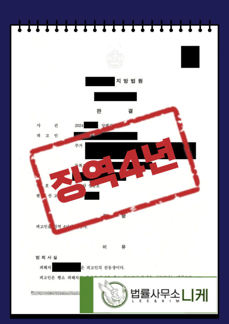 ![[징역4년] 친동생을 폭행하여 사망 (상해치사)](/_next/image?url=https%3A%2F%2Fd2ai3ajp99ywjy.cloudfront.net%2Fuploads%2Ftitleimage%2Foriginal%2F5c7d3a93d9377f31afa98928-original.jpg&w=3840&q=75)