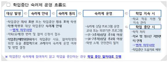 📌학교폭력 학업중단 숙려제 절차는 위 사진과 같습니다.