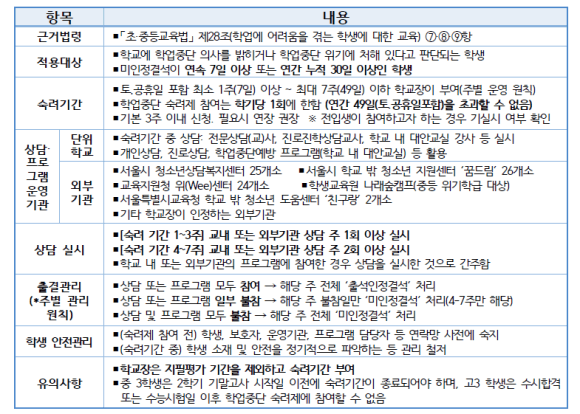 학업중단 위기 학생에게 「최소 1주(7일) 이상 ~ 최대 7주(49일)