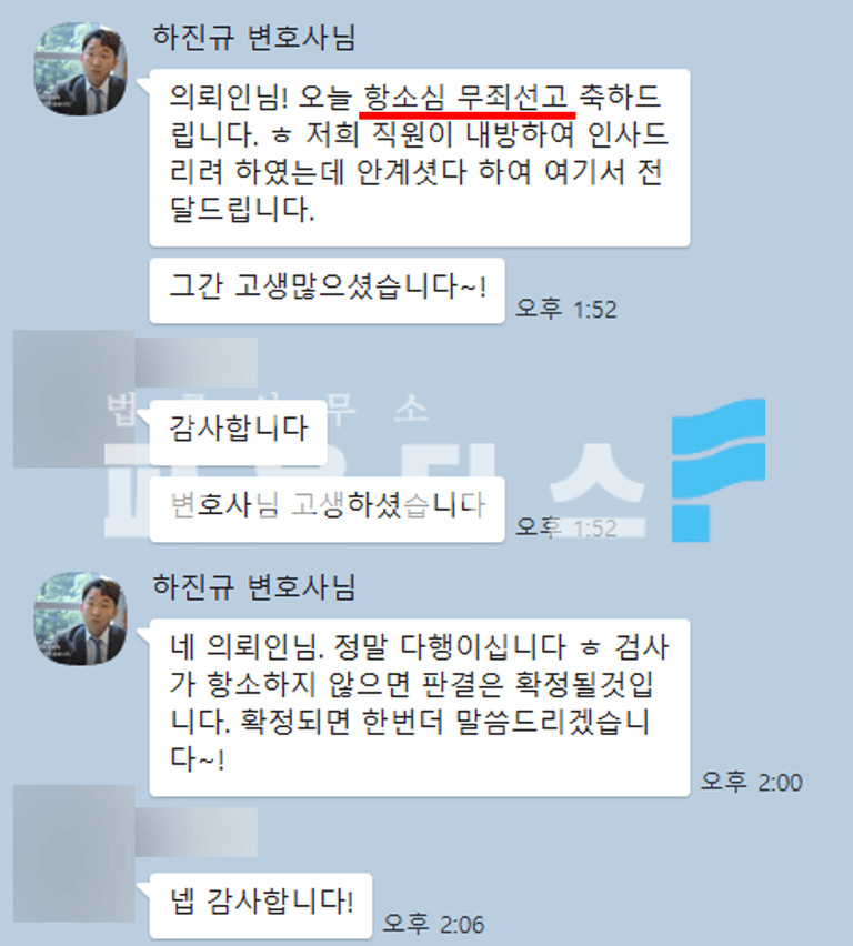 결과적으로 의뢰인의 억울한 부분이 원만히 받아들여져 원심 판결 파기 및 무죄 선고에 이르게 되었고 의뢰인은 변호인에 감사의 인사를 전하며 사건을 마무리할 수 있었습니다.