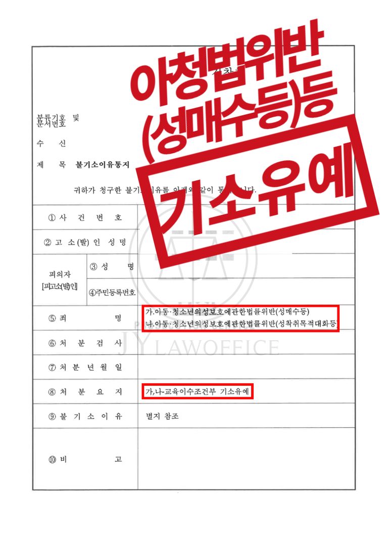 본 사건의 의뢰인은 미성년자인 상대방에게 성매매를 권유한 혐의로 '아동청소년의성보호에관한법률위반(성매수등)'등의 혐의를 받게 되었습니다. 이에 의뢰인은, 사실관계에 따른 정확한 대응을 하기 위하여 본 JY법률사무소를 찾아와 주셨습니다.
