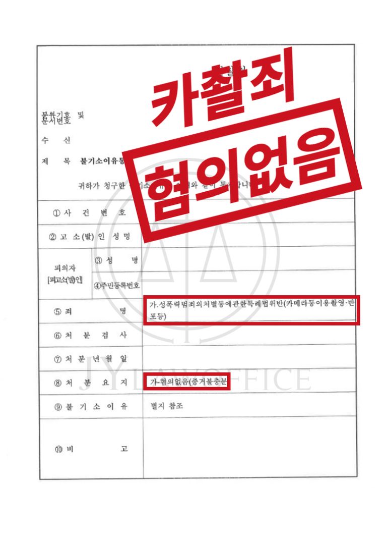 이와 같은 변호인의 도움으로, 의뢰인은 수사단계에서 혐의없음(증거불충분)의 처분을 받고 사건을 종결시킬 수 있었습니다.