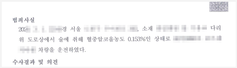 경찰관의 음주측정 요구는 운전을 종료한 때로부터 약 1시간이 지난 후에 이루어진 것이었으나 의뢰인은 음주측정에 응하지 않으면 음주측정거부로 음주운전보다 무거운 처벌을 받을 수도 있다는 것을 알고 있었고, 집행유예 기간이었기 때문에 음주측정 요구에 순순히 응하면서 운전을 한 사실도 인정하였습니다. 의뢰인의 혈중알코올농도는 0.153%로 측정되었습니다.