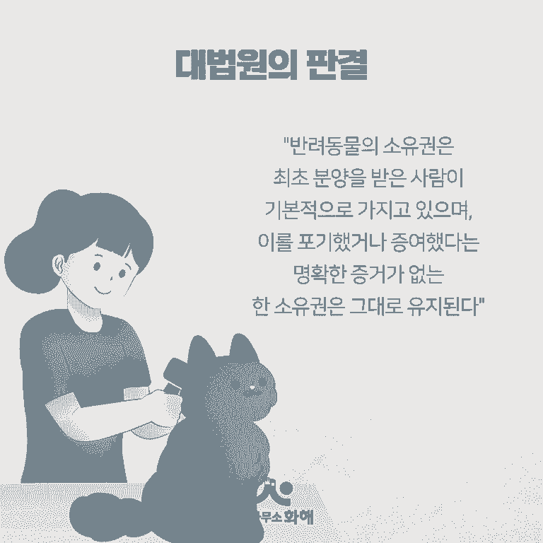 대법원은 2심 재판부의 판결대로 반려견의 소유권은 ‘기른 정’보다 ‘최초 분양’이 더 중요하다고 판단했습니다.