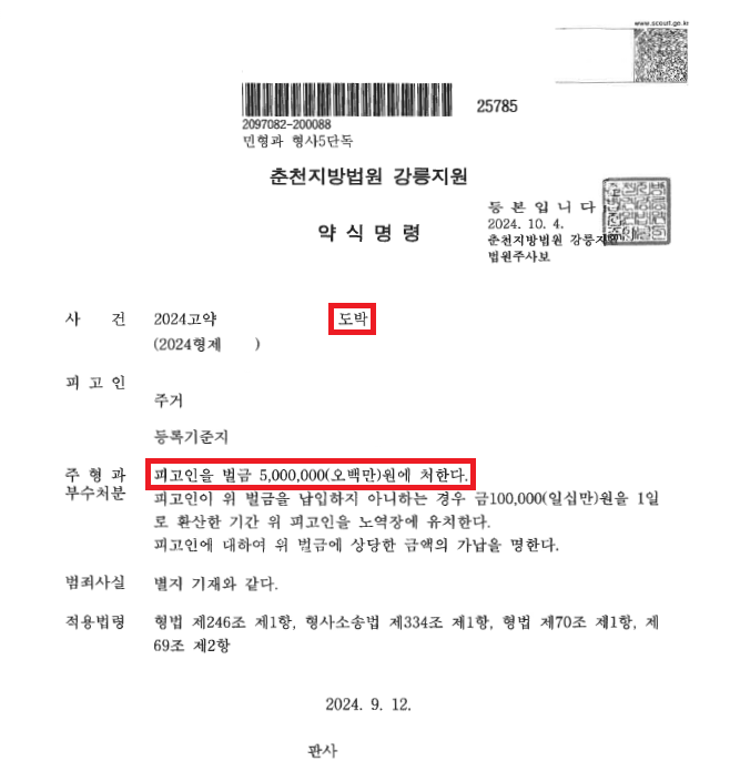 이러한 저의 조력을 바탕으로 A씨는 어떤 사이트에서 얼마의 금액으로 도박을 하였는지 정확히 파악할 수 없었을 뿐만 아니라 피의사실로 확인된 금액만 1억 원이 넘는 매우 큰 금액이었음에도 불구하고 약식명령으로 벌금형을 선고받음으로써 재판까지 나아가지 않고 사건을 최대한 가볍게 마무리할 수 있었습니다.