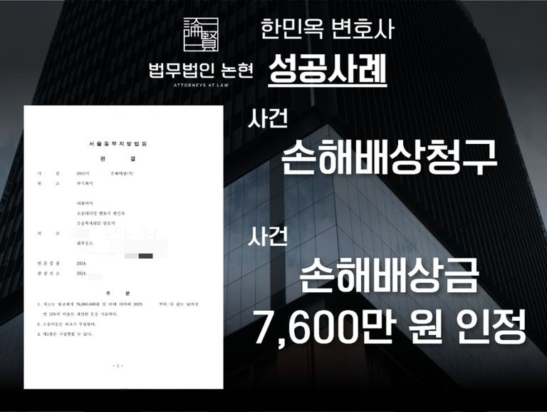 안녕하세요. 법무법인 논현, “손해배상 전문 한민옥 변호사”입니다.
