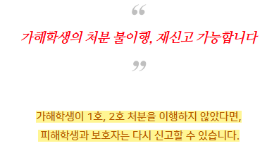 이때, 재신고는 단순히 가해학생이 처분을 어겼다는
