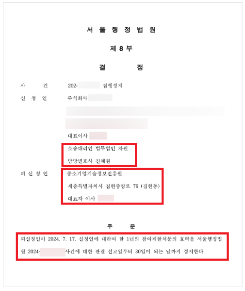 참여제한통보 집행정지 인용결정 및 재심의를 통한 면제처분 결정