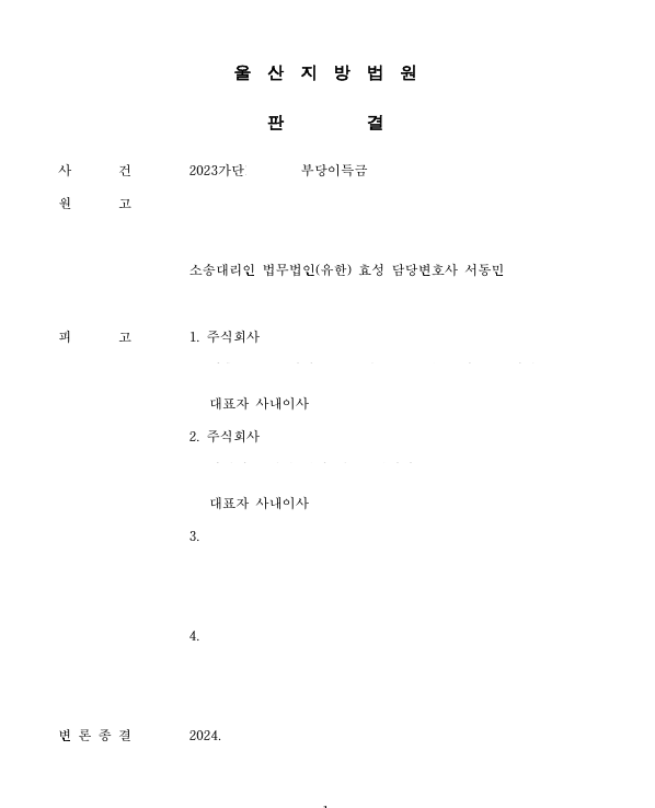 저는 즉각 입금 받은 자들을 피고로 하여 민사소송 부당이득반환청구소송을 제기하였고 법원은 원고 승소 판결을 선고하여 의뢰인은 피해액을 반환받았습니다.