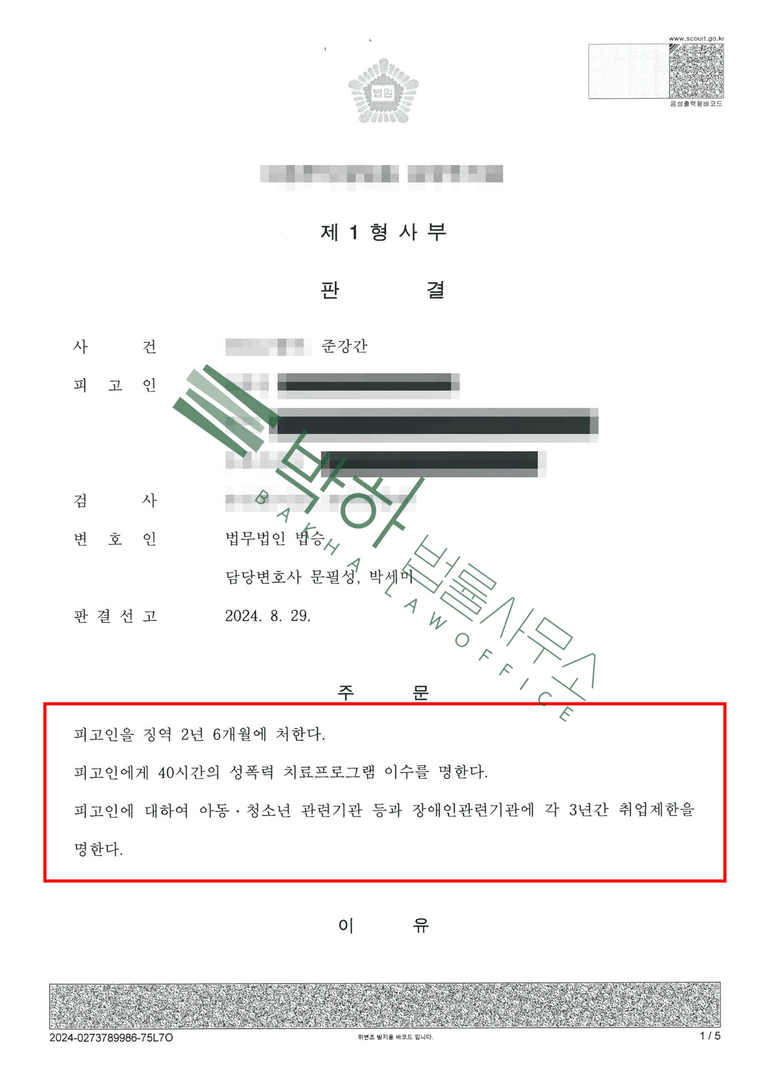 가해자가 재판단계에서 자백하며 선처를 호소하였음에도, 1심에서 징역 2년 6개월을 선고받고 법정 구속되었습니다.
