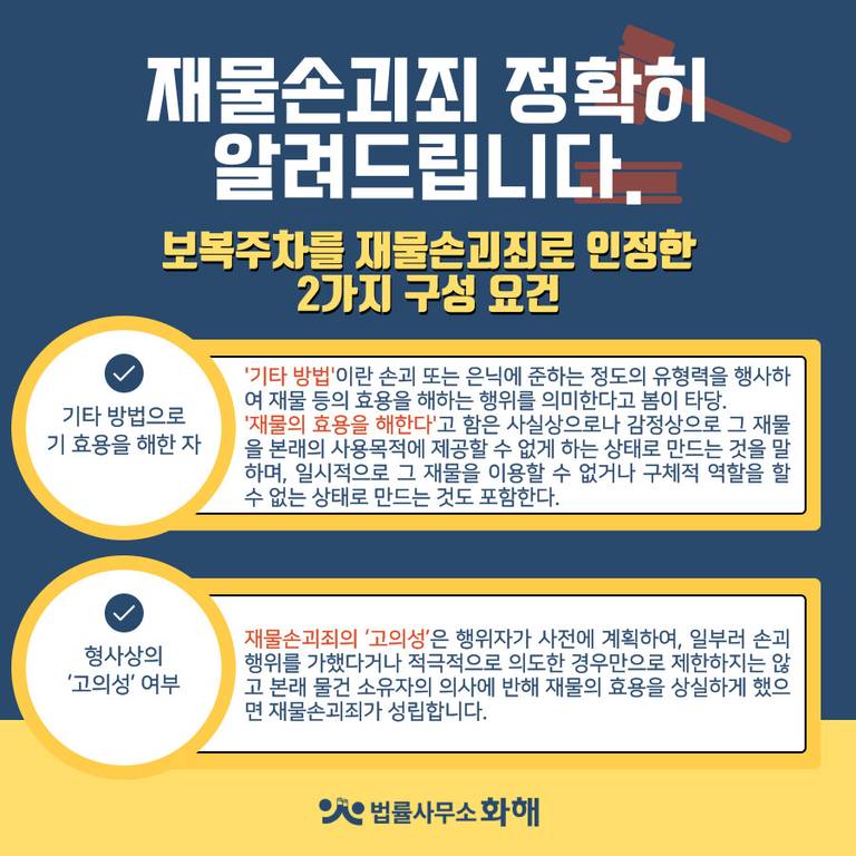 오늘은 법률사무소 화해에서 보복주차, 재물손괴죄로 인정된 사례와 함께 재물손괴죄에 대해 정확히 알려드릴게요.
