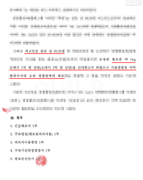 사안이 매우 중대했기 때문에 서울시경찰청 마약범죄수사대는 피의자에 대하여 곧바로 구속영장을 신청하였습니다.