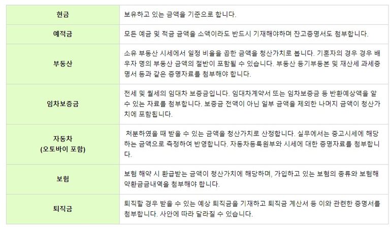 개인회생 시 청산가치에 포함되는 재산목록에 대해 알아보겠습니다.