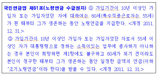 노령연금의 액수가 적다 하여도 죽을 때까지 평생 지급받는 것인 만큼 무시할 수는 없습니다.