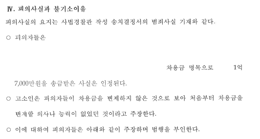 최근 피의자를 변호했던 사건인데 이 사건도 역시 고소인들의 골자는 '처음부터', 즉 차용 당시에 변제 의사나 능력이 없었다는 것이다.