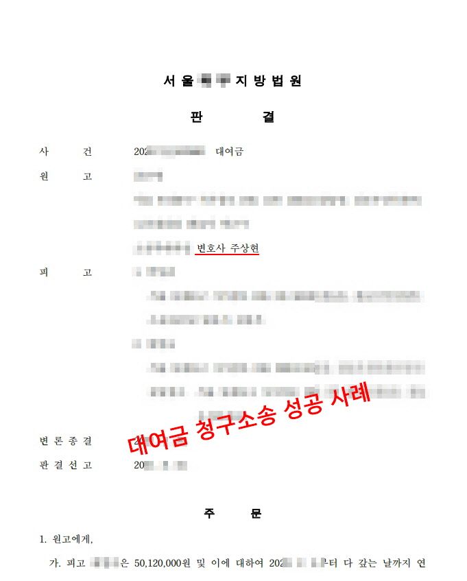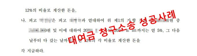 대여금 청구 소송에서 원고를 대리하여 소송 수행을 하였고 재판 결과 원고의 청구가 인정된 사례입니다.