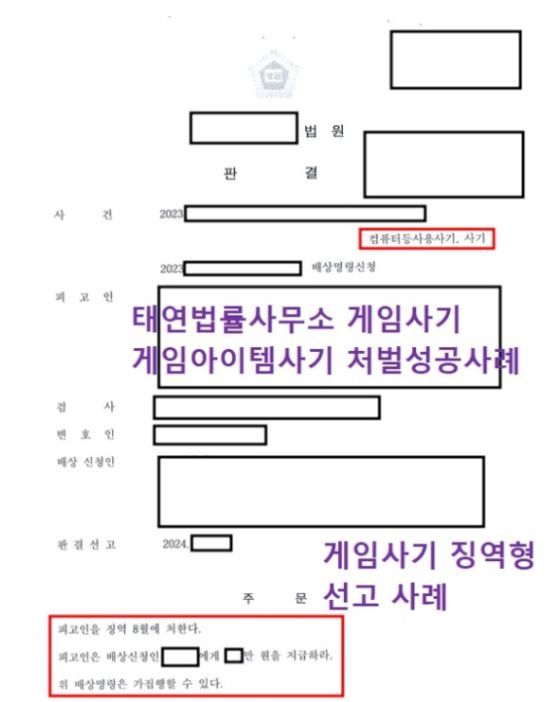 태연법률사무소에서 진행한 게임아이템사기 관련 성공사례 소개해드리겠습니다.
