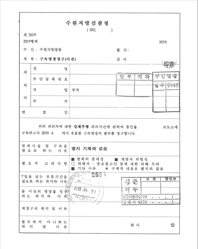 - 영장청구 기각-