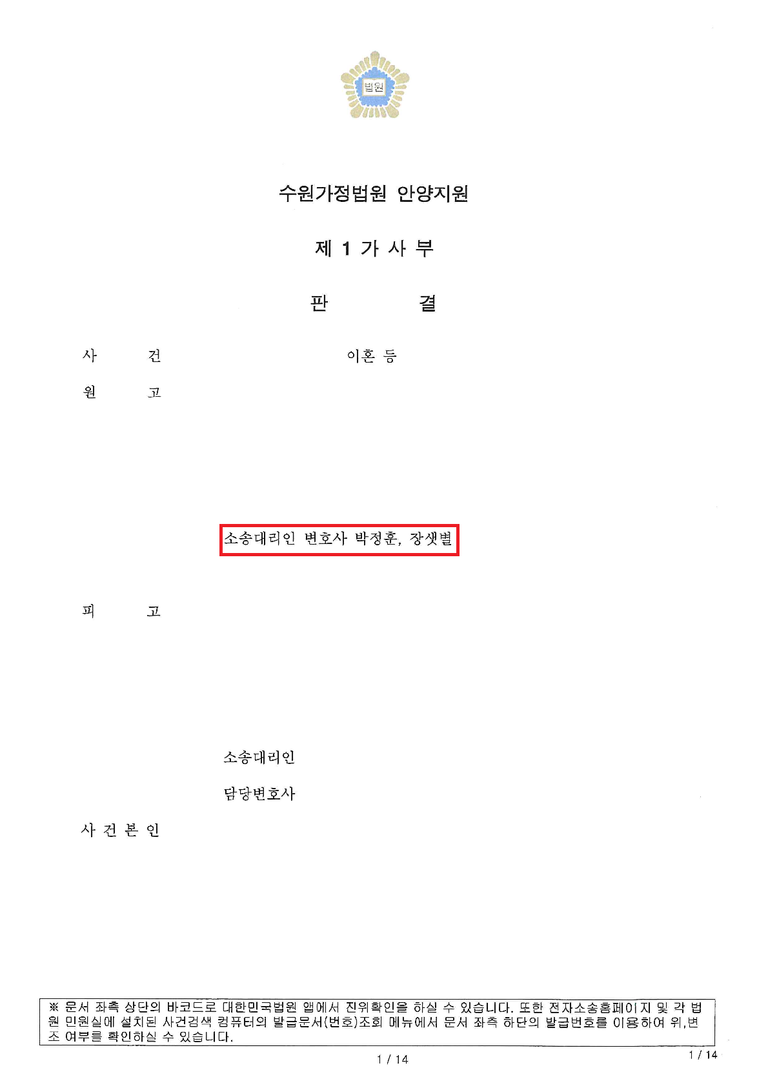 이혼을 굳게 결심하신 후 저희를 찾아오셨습니다.