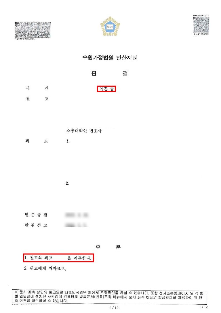 합당한 이혼을 하기 위해 저희를 찾아오셨습니다.