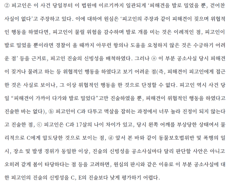 2) 전문가 증거의 해석: 동물병원 진단서도 그 내용을 꼼꼼히 살펴 사건과의 인과관계를 따져봐야 합니다.