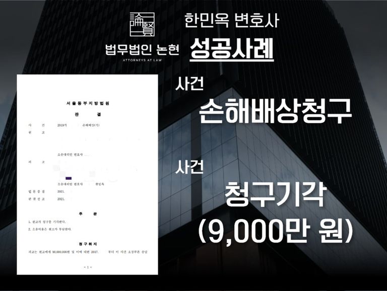따라서, 지금부터 “손해배상소송, 9,000만원 전액 기각시킨 사례”를 소개해 드릴 테니, 이 글을 읽어보시고, 도움이 필요하시다면, “손해배상 전문 한민옥 변호사”에게 상담을 요청하셔서 법적인 조력을 받으시길 바랍니다.