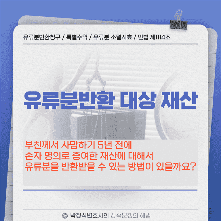 오늘은 할아버지께서 손자, 사위, 며느리에게 증여한 재산에 대해서, 할아버지 사망 이후 상속인이 유류분반환청구를 할 수 있는지에 대해서 알아보도록 하겠습니다.