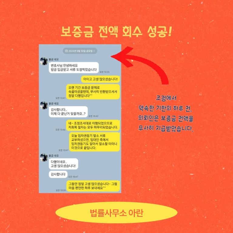 그로부터 3개월 뒤, 집주인은 의뢰인에게 보증금을 전액 반환했습니다.