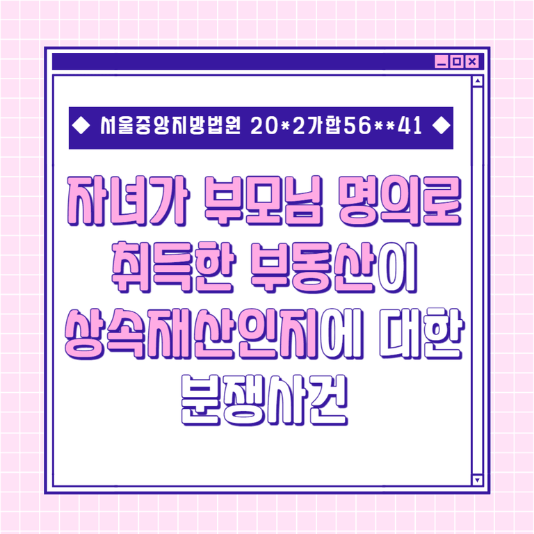 원고는 집안의 장녀로서 부모님을 자기 소유의 집에 모시고 살고 있었습니다. 원고는 좀 더 큰집으로 이사하는 과정에서 새로 취득한 집을 당시 사정에 의해서 부모님의 공동 명의로 등기하게 되었습니다.
