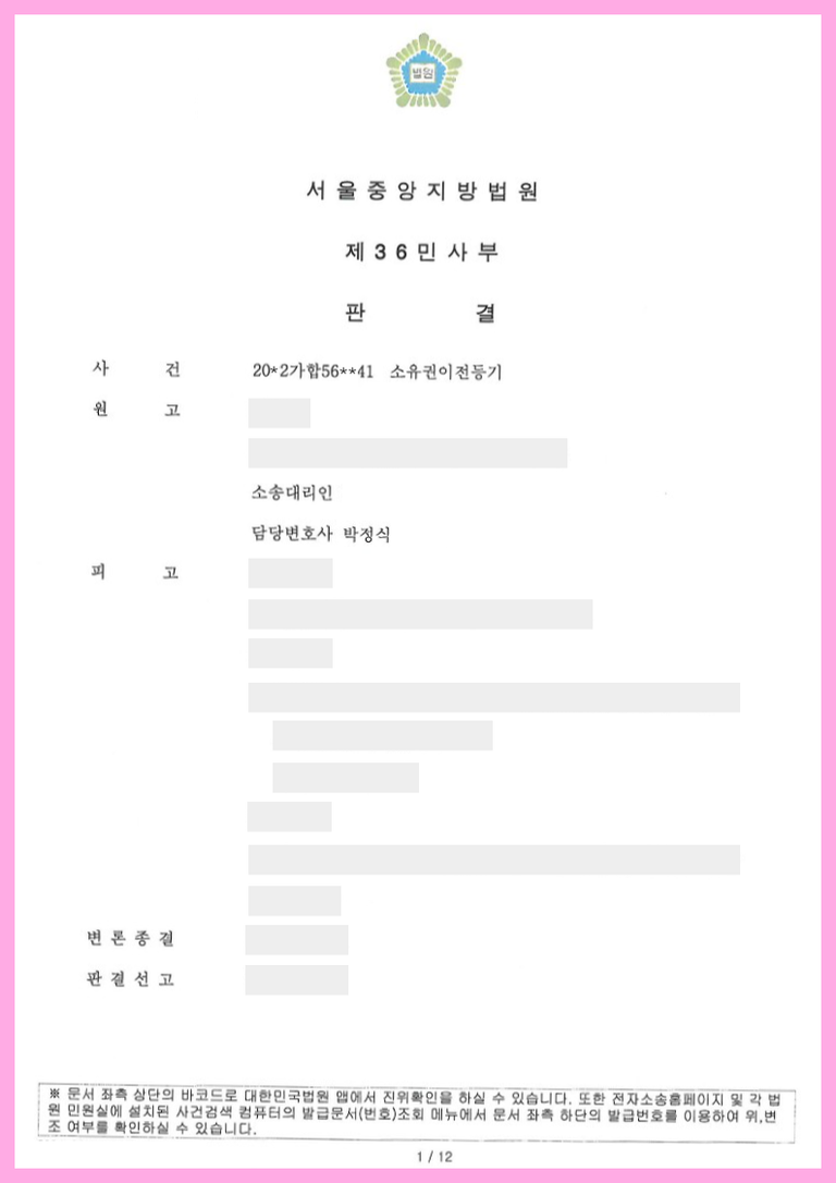원고인 장녀는 매수인으로서 직접 매매계약을 체결하고 모든 매매대금을 부담하였고, 또한 원고가 부친을 모두 모시면서 살고 있는 사정이었기 때문에, 부모님 명의로 되어 있는 명의신탁된 집에 대해서 원고의 정당한 소유권을 찾기 위해서 소유권이전등기소송을 제기하게 된 사건이었습니다.