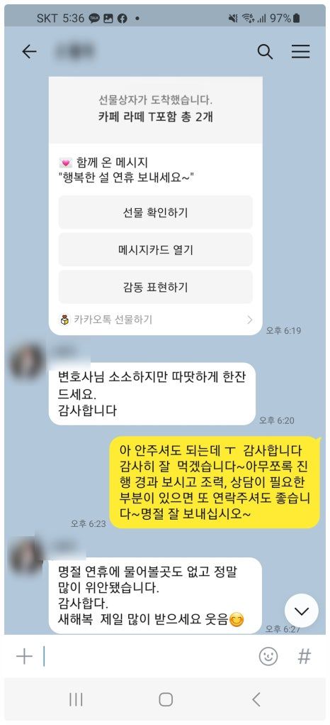 저희를 찾아주신 의뢰인분들의 감사 카톡 후기입니다. : )