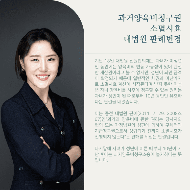 이번 시간에는 과거양육비청구권 소멸시효에 대한 대법원 판례 변경의 의미와 그 효과에 대해 알아보도록 하겠습니다.