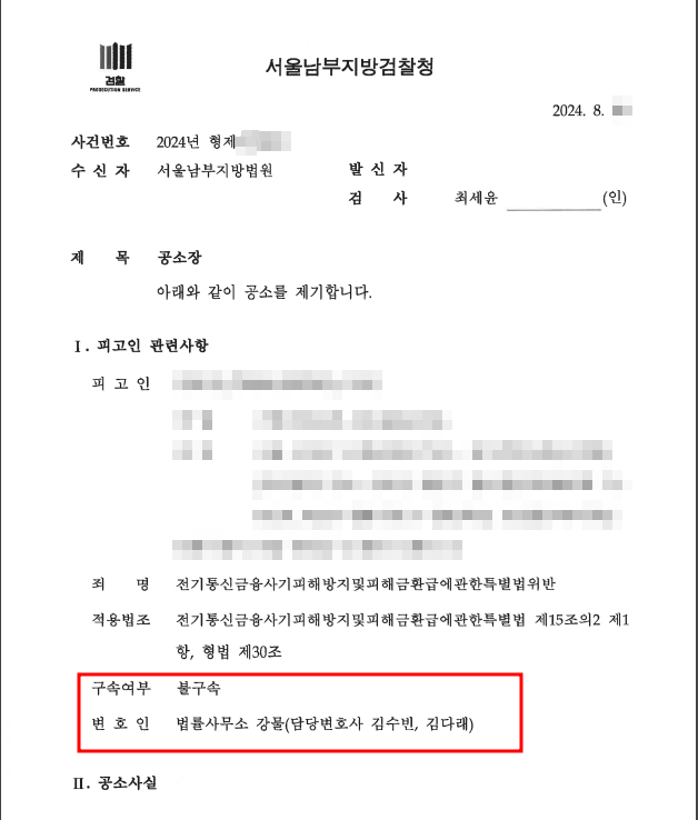 이에 변호인은 미필적 고의를 인정하고, 주거지가 확실한 점, 도주 우려나 증거 인멸의 우려가 없는 점 등을 중점으로 구속의 필요성이 없다는 취지의 의견서를 신속히 작성하였고, 가족들의 탄원서 등을 세심히 살폈습니다. 영장실질재판에 이르러 담당 재판장님과 보이스피싱의 처벌에 대한 흐름 및 미필적 고의이긴 하나 확정적인 고의가 없었음은 명확하고, 실질적인 가장인 의뢰인의 구속은 한 가정의 붕괴를 초래하는 점을 무시할 수 없다는 변론을 펼쳤습니다.
