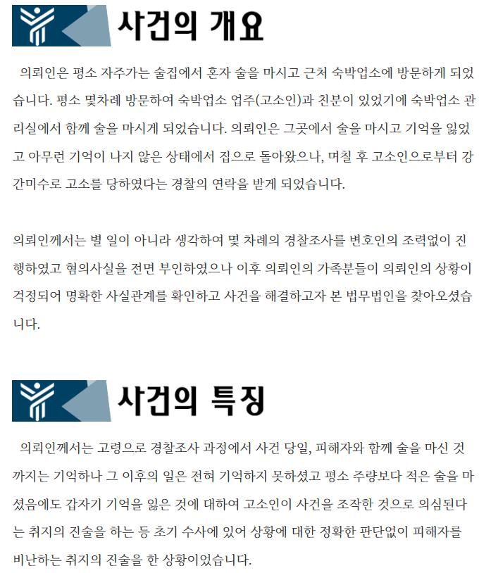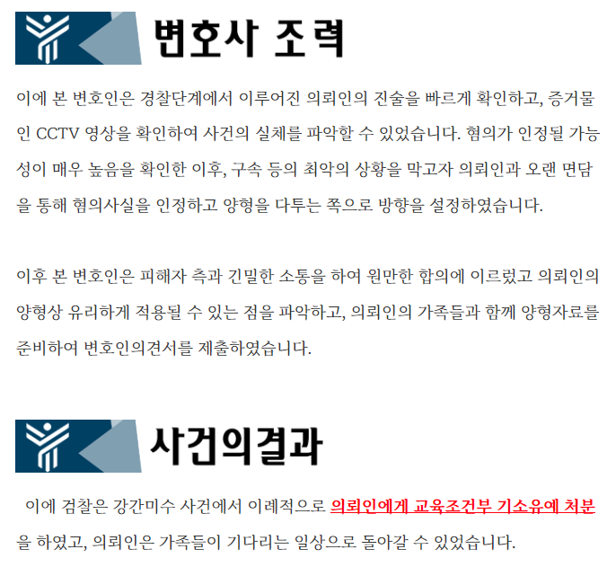 ![[성범죄/강간미수] 강간미수 수사단계에서 기소유예 처분](/_next/image?url=https%3A%2F%2Fd2ai3ajp99ywjy.cloudfront.net%2Fuploads%2Ftitleimage%2Foriginal%2F5c64de0989f37c09d0092053-original.jpg&w=3840&q=75)