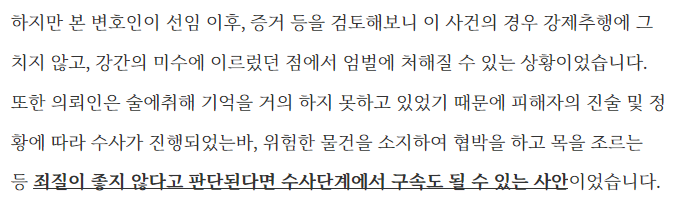 의뢰인께서는 평소 알고 지내던 여성과 술을 마시던 중