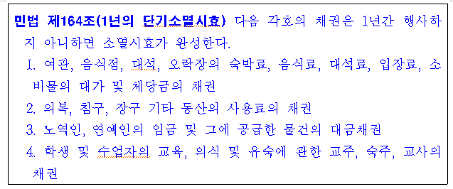 그렇다면 1년의 소멸시효가 적용되는 경우는 무엇이 있을까요?