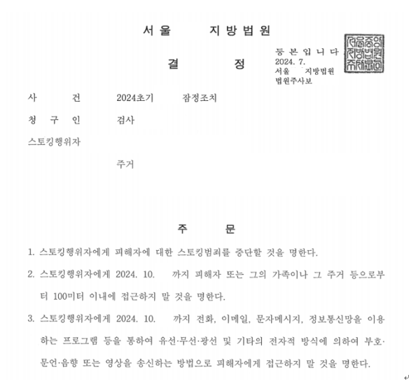 " 스토킹처벌법 위반, 협박죄 벌금형 구약식 "