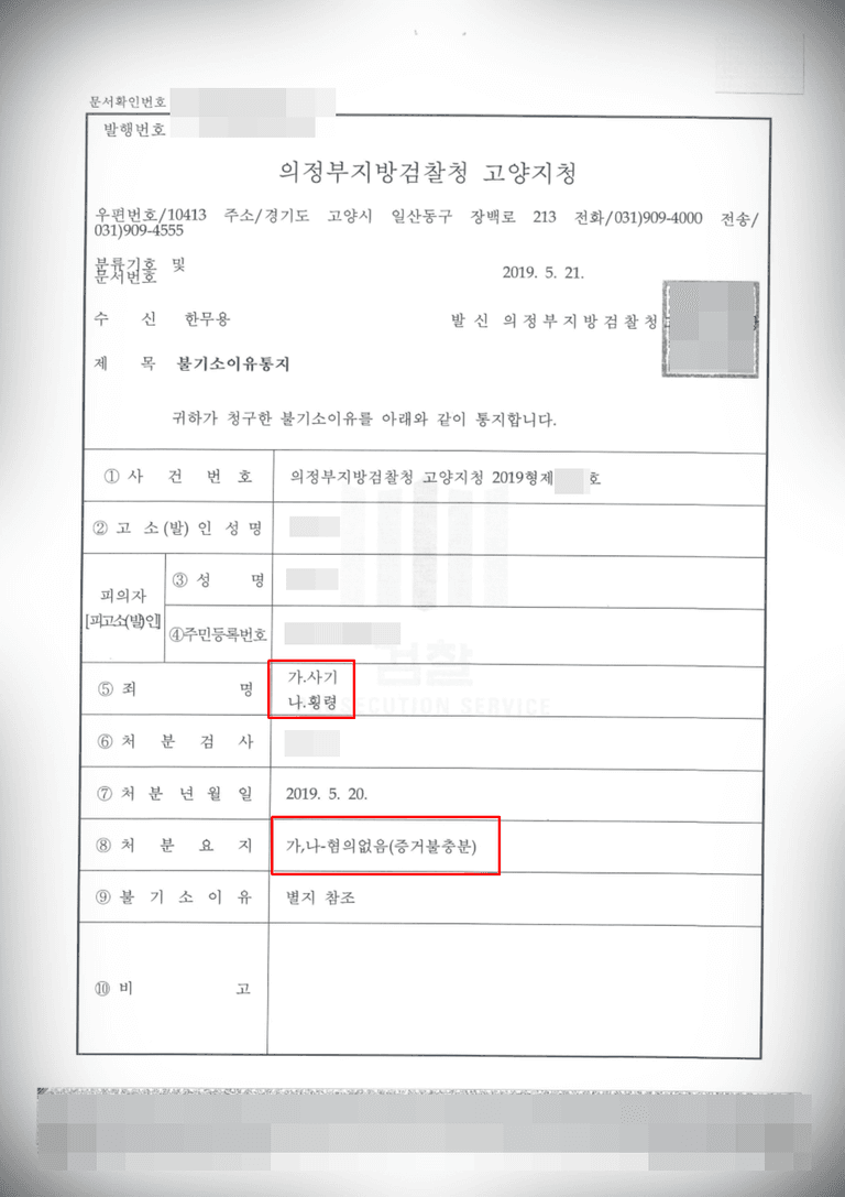 검찰 단계 혐의 없음으로 방어하였습니다.