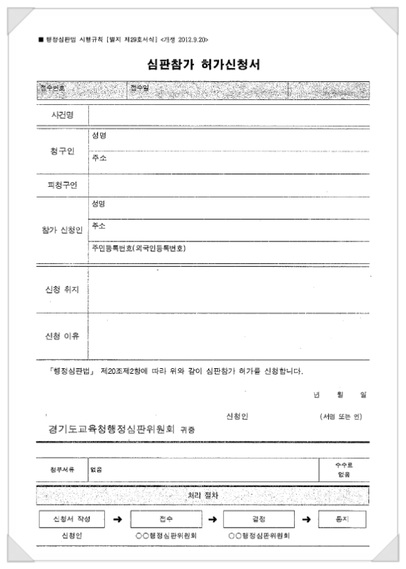 심판참가 허가신청서는 행정심판 청구 사실 알림 보통 함께 보내주며