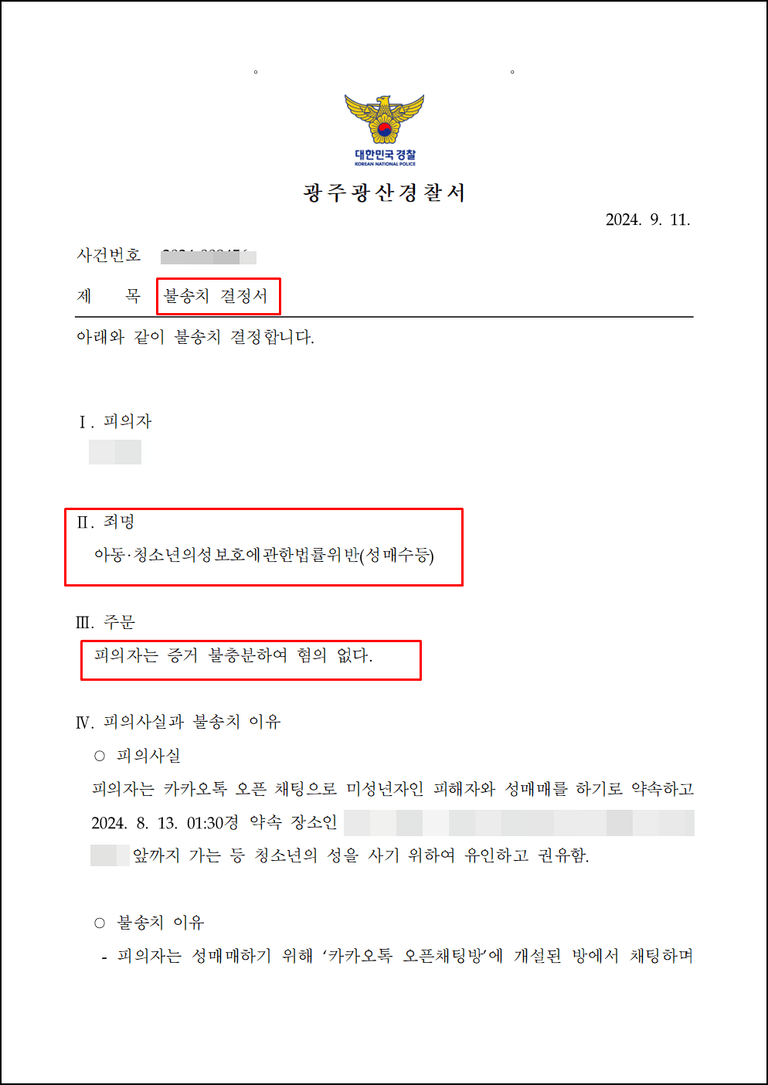 경찰 수사 단계에서 혐의없음(불송치) 결정을 받았습니다.