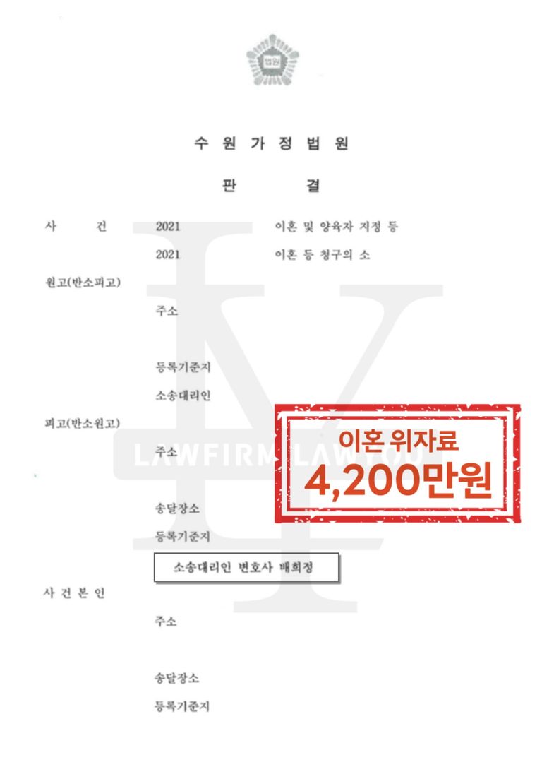 1심 재판부는 배희정 변호사의 철저한 증거 제출과 논리적인 변론을 인정하며, 남편의 부정행위가 악의적이라고 판단했습니다. 그 결과 남편은 의뢰인에게 4,200만 원의 손해배상을 지급해야 한다는 판결을 받았습니다.